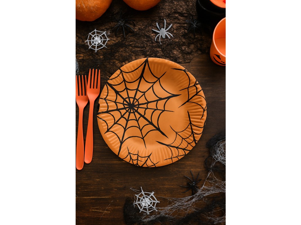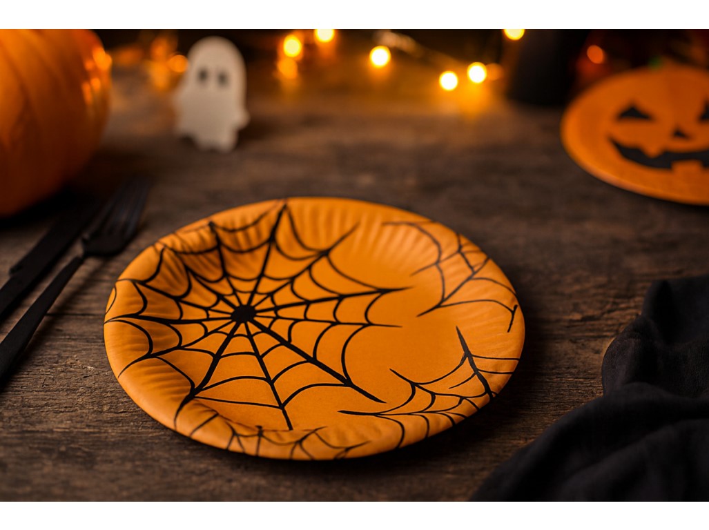 Farebné papierové tanieriky s hravým halloweenskym motívom duchov, tekvíc a netopierov dodajú vašej oslave tú správnu strašidelnú atmosféru. Ideálne na detské party, školské akcie alebo domáci Halloween. Balenie obsahuje 8 ks tanierikov s priemerom 23 cm. Jednorazové a praktické.