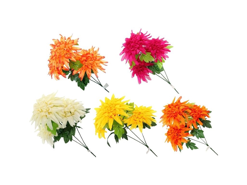 Umělá chryzantéma se třemi plnými květy je elegantní dekorace, která dodá každému prostoru svěží a přírodní vzhled. Květy působí realisticky a díky kvalitnímu zpracování si dlouhodobě udržují svůj tvar i barvu. Skvěle se hodí do vázy, věnců, sezónních aranží nebo jako doplněk ke stávajícím květinovým dekoracím. Je nenáročná na údržbu a vždy vypadá perfektně. Mix barev nabízí různé odstíny, které snadno sladíš s interiérem či tematickou výzdobou. Zboží je dodáváno v mixu. Doručované zboží je vybíráno náhodně a nelze vybrat konkrétní provedení.