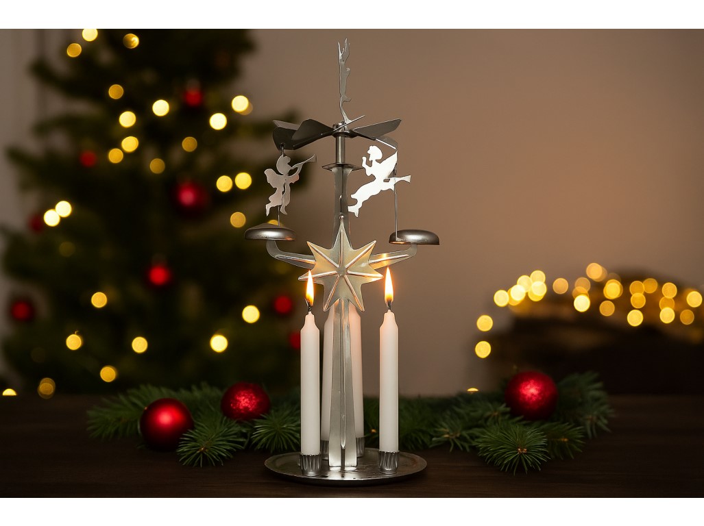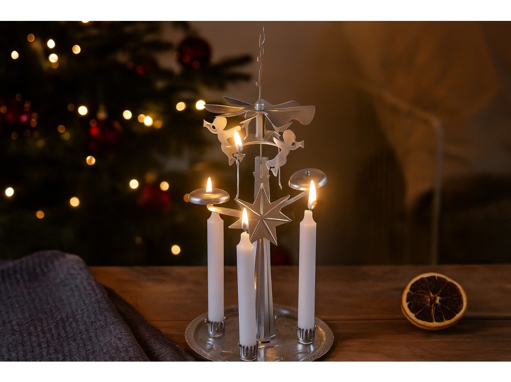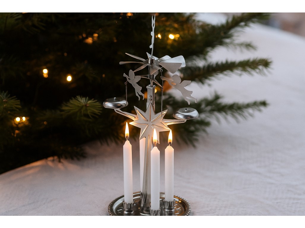 Klasické anjelské zvonenie prináša čaro Vianoc priamo k vám domov. Akonáhle sa sviečky zapália, rozohrajú sa jemné tóny cinkajúcich zvončekov – nostalgická pripomienka detstva a pokojných sviatočných večerov. Elegantný strieborný dizajn sa hodí do moderných aj tradičných interiérov. Skvelý ako darček aj ako súčasť vianočnej výzdoby.